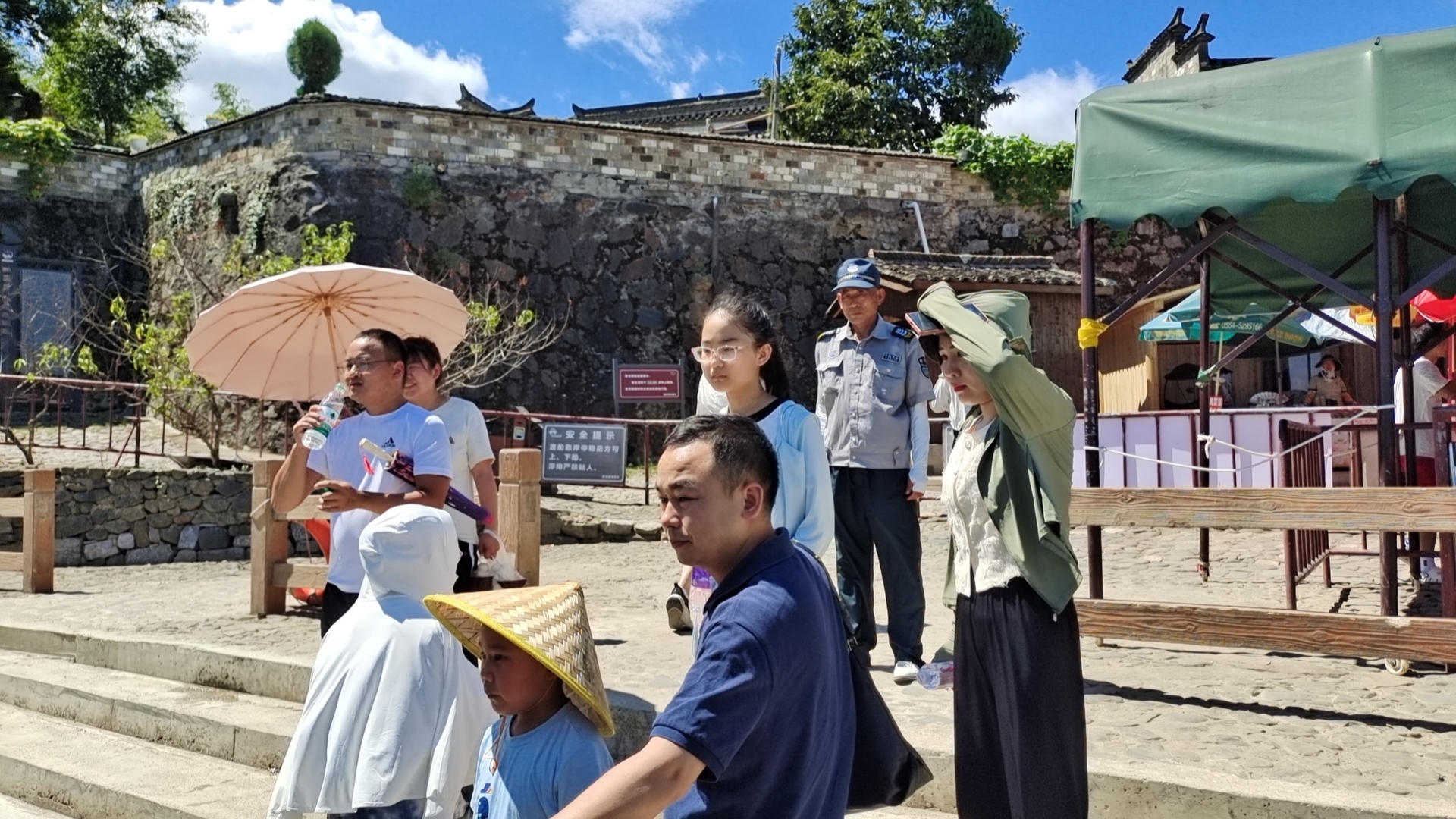 滚滚热浪,他们始终坚守在岗位一线。作为桃花潭景区的安保人员,他们细心的为游客介绍旅游产品项目,指引路线,入票口、踏歌古岸渡口……随处看见他们的身影。他们始终以挺拔的身姿、亲切的微笑,迎来送往每一位游客,衣服湿了又干,干了又湿是每天的常态,即便如此,他们却从未有过丝毫的懈怠和旅游服务怠慢,时常迎来游客高度的赞赏。