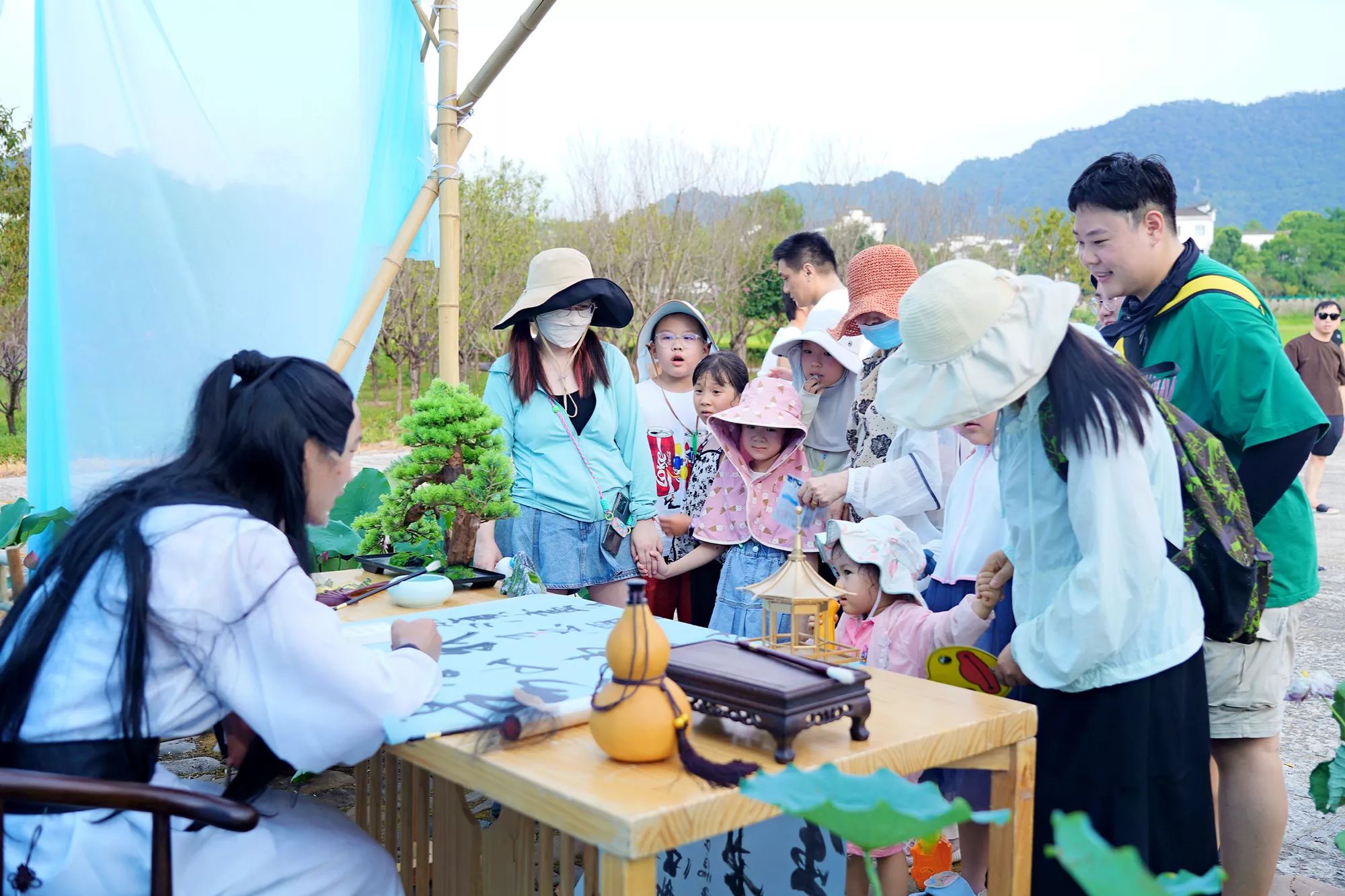 李白以琴为伴,以诗会友,与游客们进行心灵的深度交流。每一句诗词,每一缕琴音,都像是穿越千年而来的低语,触动心弦,引人共鸣。