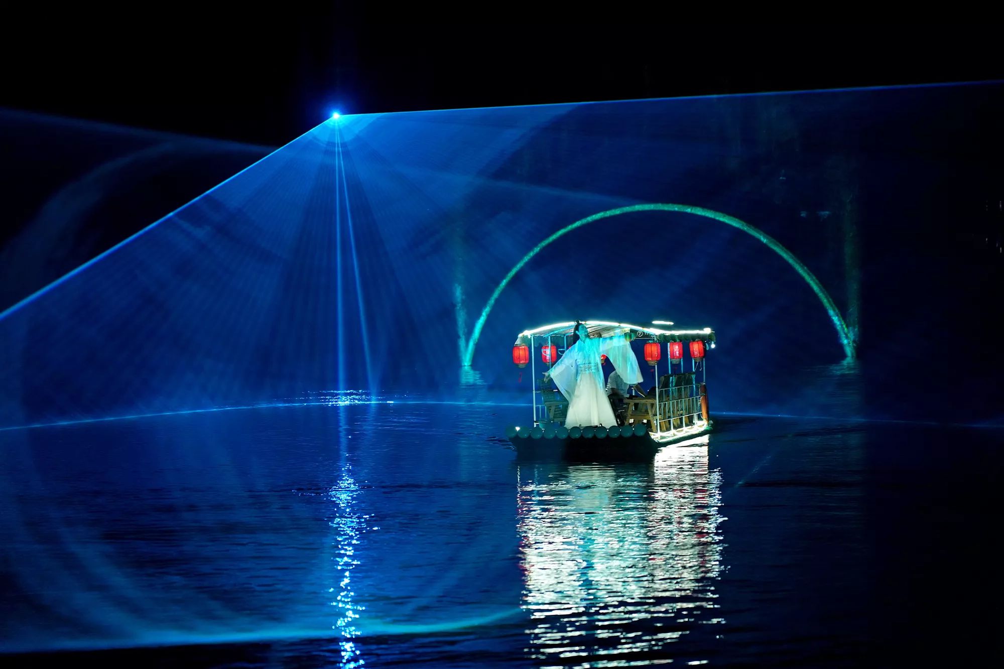 活动的高潮部分,是那场令人叹为观止的晚间光影表演。随着灯光的变幻与时空的流转,李白仿佛穿越湖心,引领游客们沉浸于一场关于他与大黄山的历史对话之中。