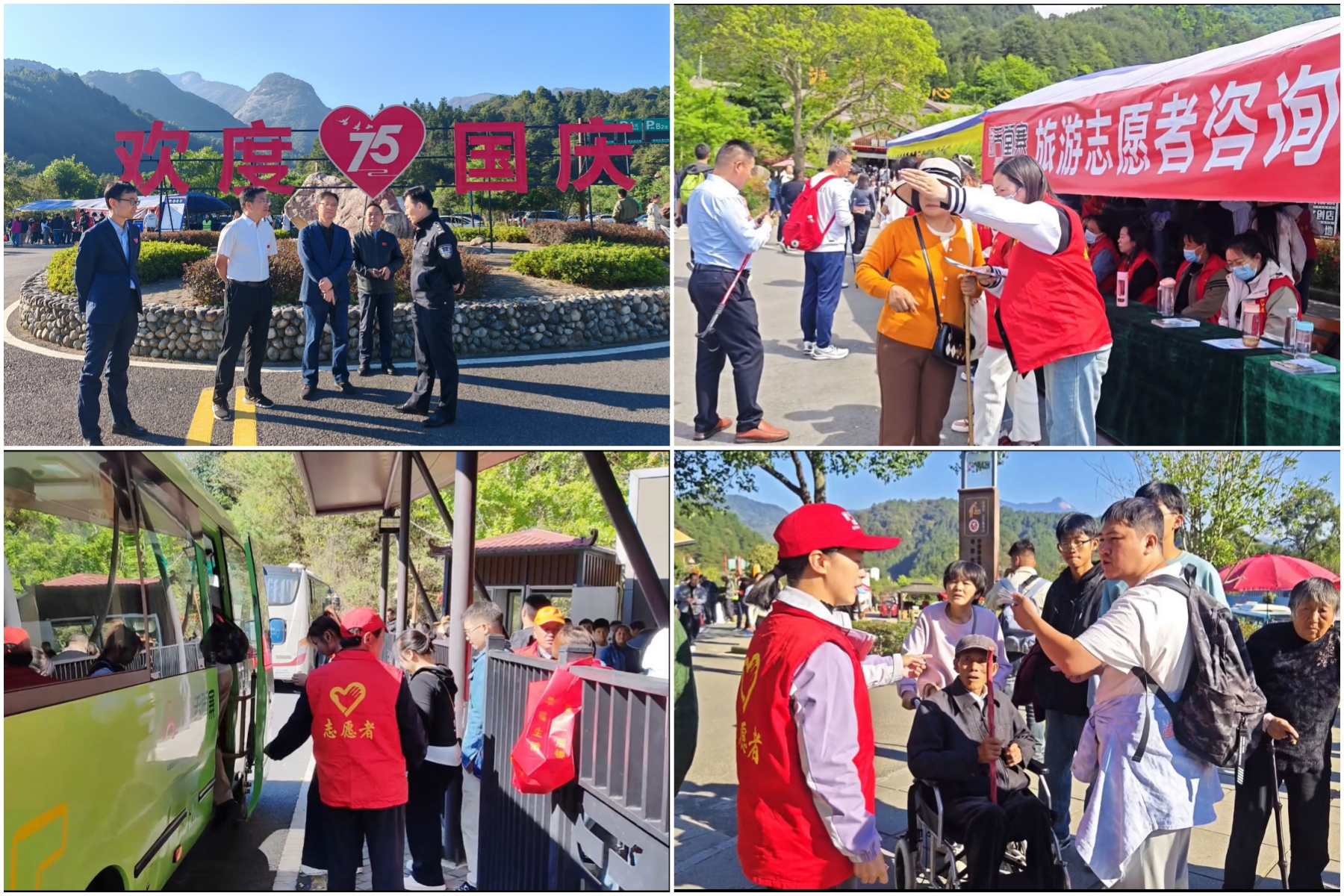 “十一”黄金周,天堂寨景区提前部署,加强安全管理,严格执行预约、限流、错峰等措施,确保旅游秩序平稳有序。景区员工全员在岗,公司领导靠前指挥,会同政府、公安、交警、消防、城管、文旅、医疗等十余支服务专班,以及外聘的特勤、保洁、志愿服务人员,组成了500余人的服务保障队伍,全力做好旅游服务保障。景区工作人员、志愿服务人员分布景区各点,及时为游客提供咨询服务,积极为游客排忧解难,金安救援队和志愿者为体力不支老人、与家人走散的小孩及遗失财物的游客提供及时专业的救援服务。国庆期间,景区内秩序井然,未发生一起安全事故,得到游客一致好评。