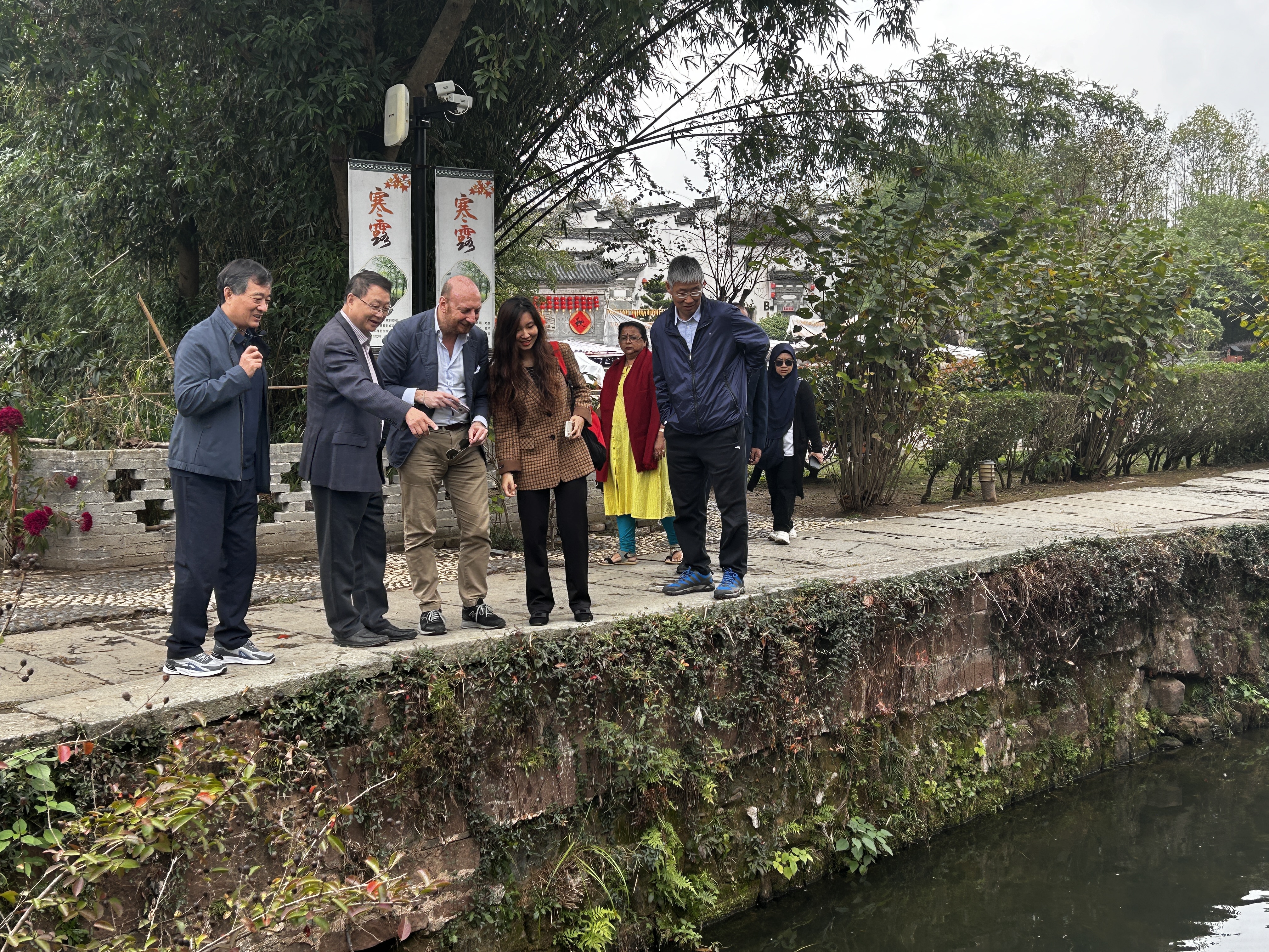10月28日,国际灌排委主席马可·阿西里,国际灌排委副主席穆罕默德·阿兹米·本·伊斯梅尔,国际灌排委秘书长拉克什·库马尔·古普塔,马来西亚国家灌排委副主席阿扎兹·本·扎卡里,国际灌排委名誉主席丁昆仑一行赴唐模景区开展堨坝考察工作,黄山市各级政府及景区相关负责人员陪同考察。
