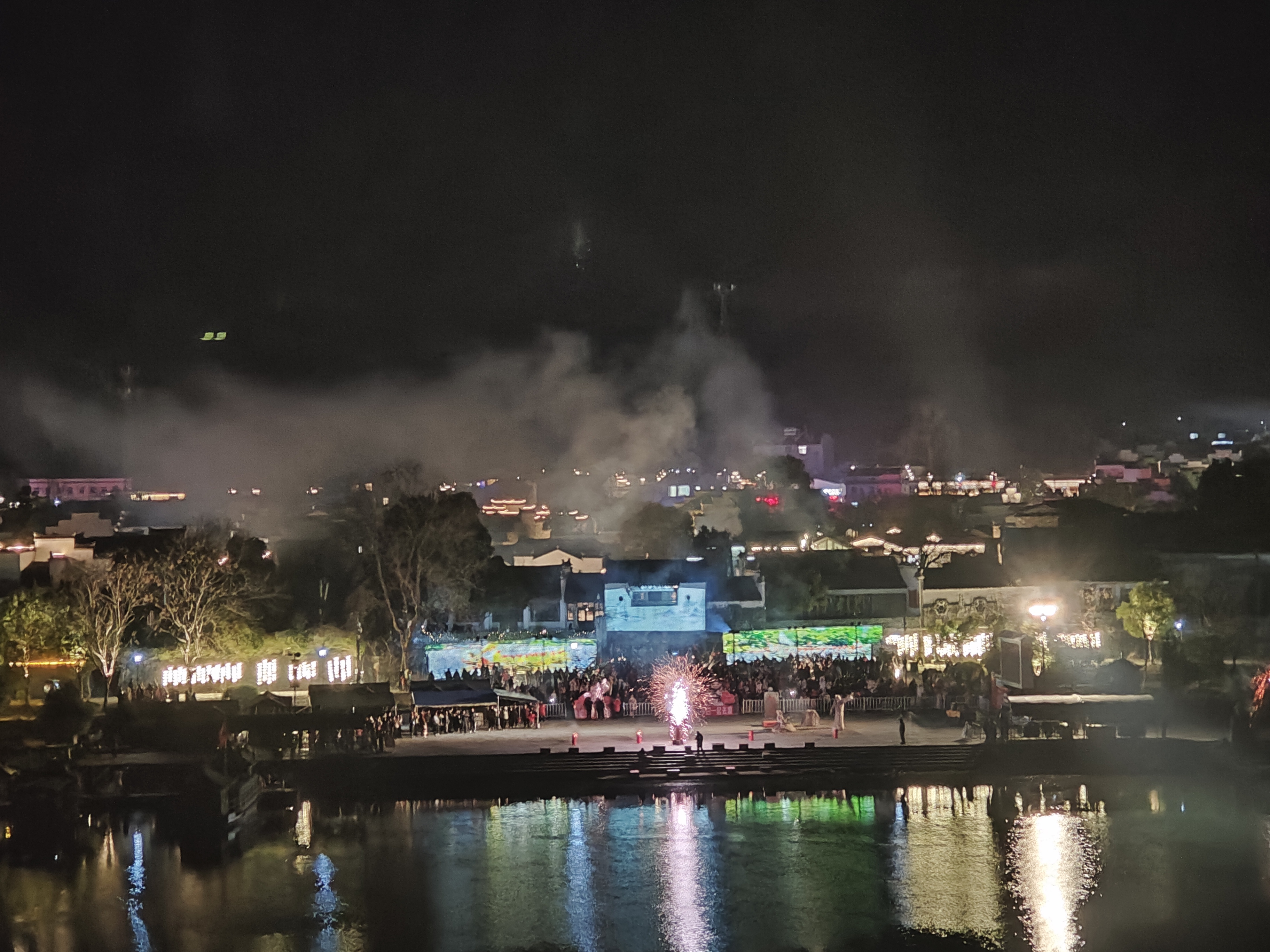 为有效营造春节浓厚氛围,让游客真切感受到红火年味,1月29日-2月1日晚间,桃花潭景区内举办了盛大的春节烟花秀,绚烂的烟花照亮了整个夜空,与桃花潭水交相辉映,承载着人们对新年的美好期盼和愿景,火树银花不断升腾绽放。