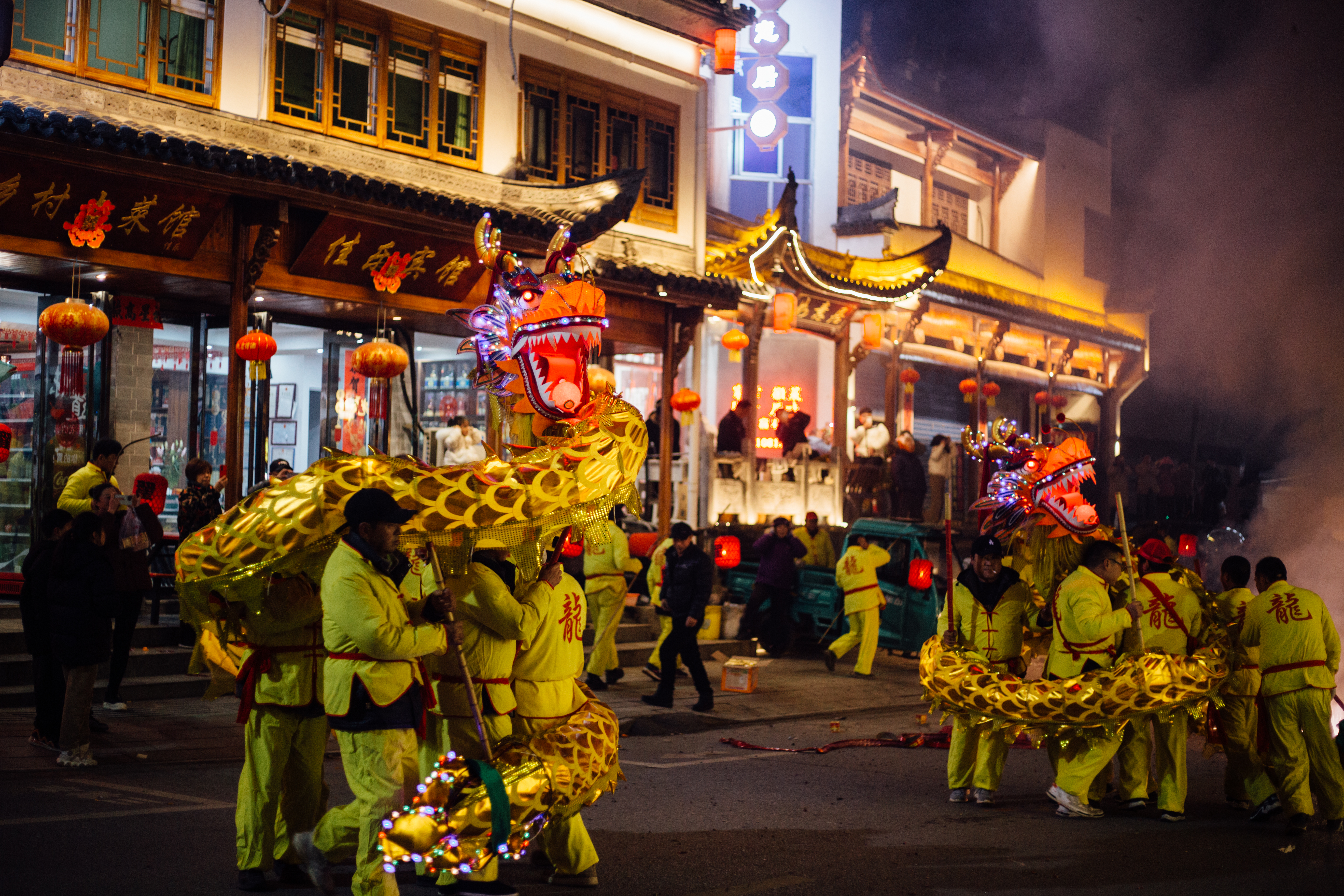 同时,桃花潭景区与镇村联合安排了精彩绝伦的舞龙表演,舞龙队伍身着鲜艳的服饰、手持道具,巨龙在锣鼓声中翻腾跳跃,时而盘旋、时而飞舞,气势磅礴姿态万千,受到了广大游客的热情追捧和称赞,他们纷纷表示“来泾县桃花潭过大年,不虚此行”。