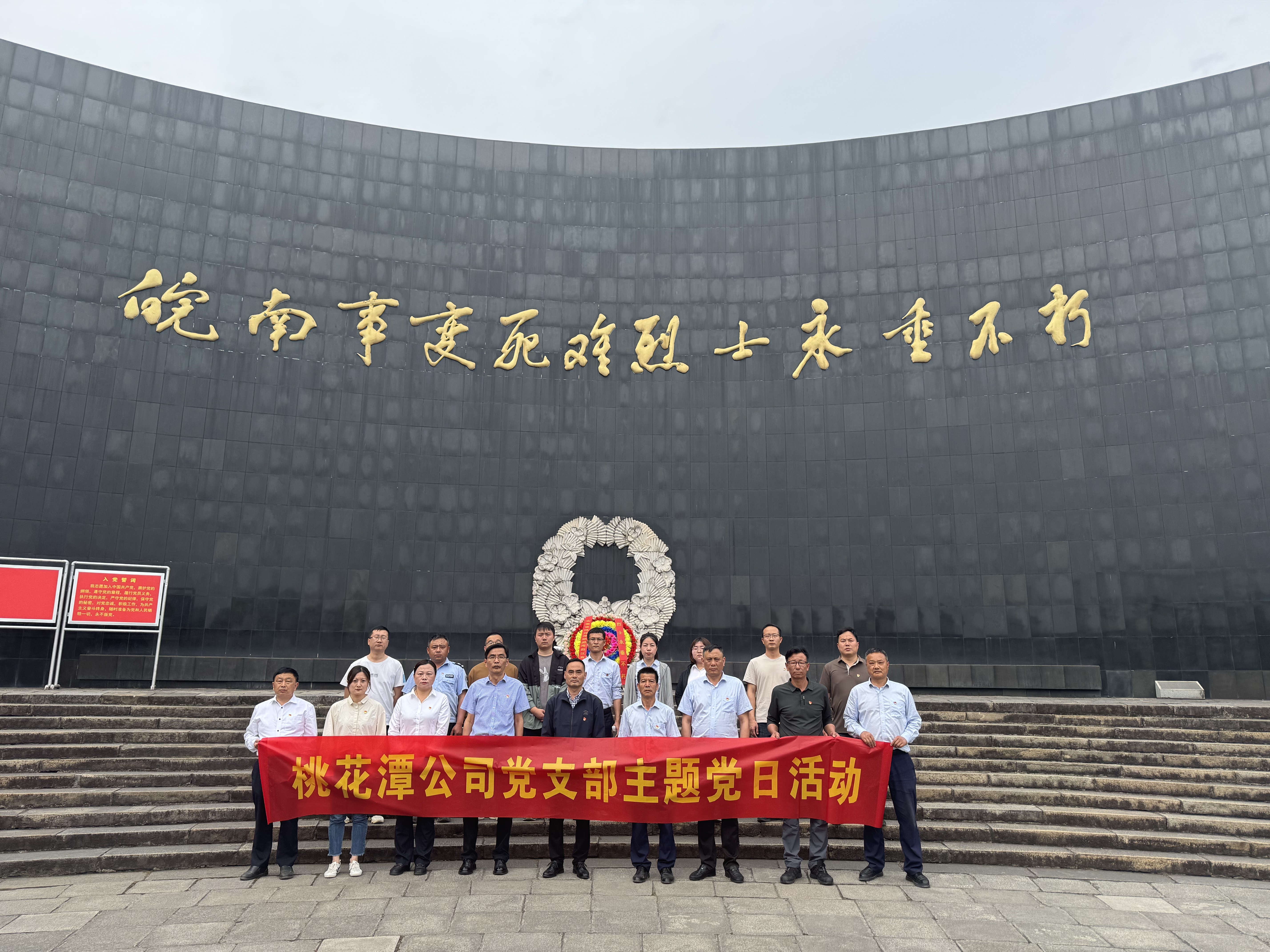 4月11日,桃花潭公司党支部组织全体党员、部分团员及青年代表赴泾县“皖南事变”烈士陵园,开展深入贯彻中央八项规定精神学习教育主题党日、主题团日活动,缅怀革命先烈、致敬人民英雄、锤炼坚强党性,以优良作风凝心聚力、干事创业。