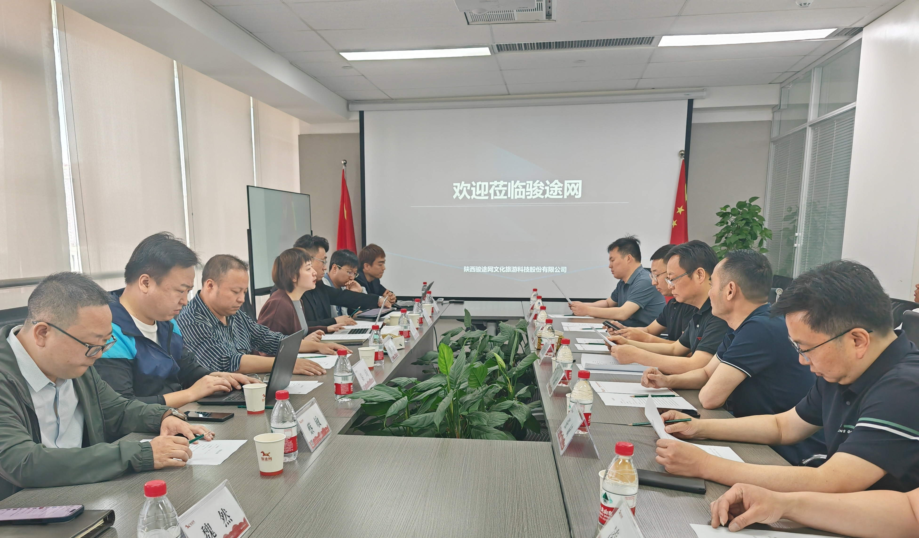 4月15日,考察组一行到访骏途网股份公司,参观了骏途网智慧文旅大数据中台,了解智慧景区建设运营情况、创新模式和先进成果。双方就战略方向、技术应用、产品融合、营销推广、演艺项目落地等多方面的合作进行了深入交流。骏途网股份公司党支部书记、董事长、总经理吉楠,副总经理宋楠及班子成员,陕西元景数创科技公司副总经理秦琦等陪同考察。